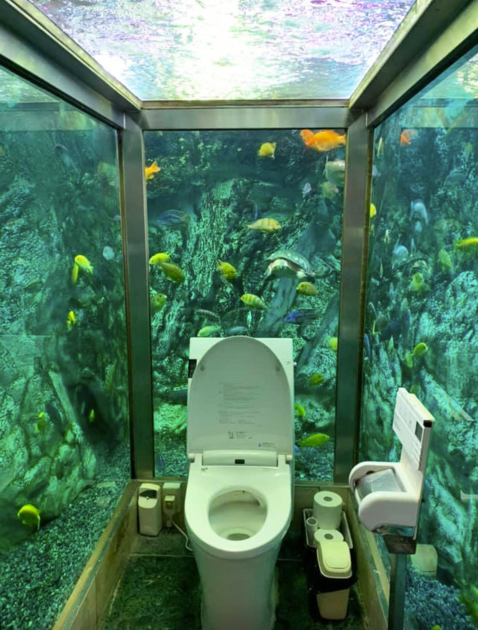 Si te encantan los peces exóticos y no te importa que cientos de ellos te miren mientras respondes a la llamada de la naturaleza, probablemente te encantará usar este original baño acuario en Akashi, Japón.