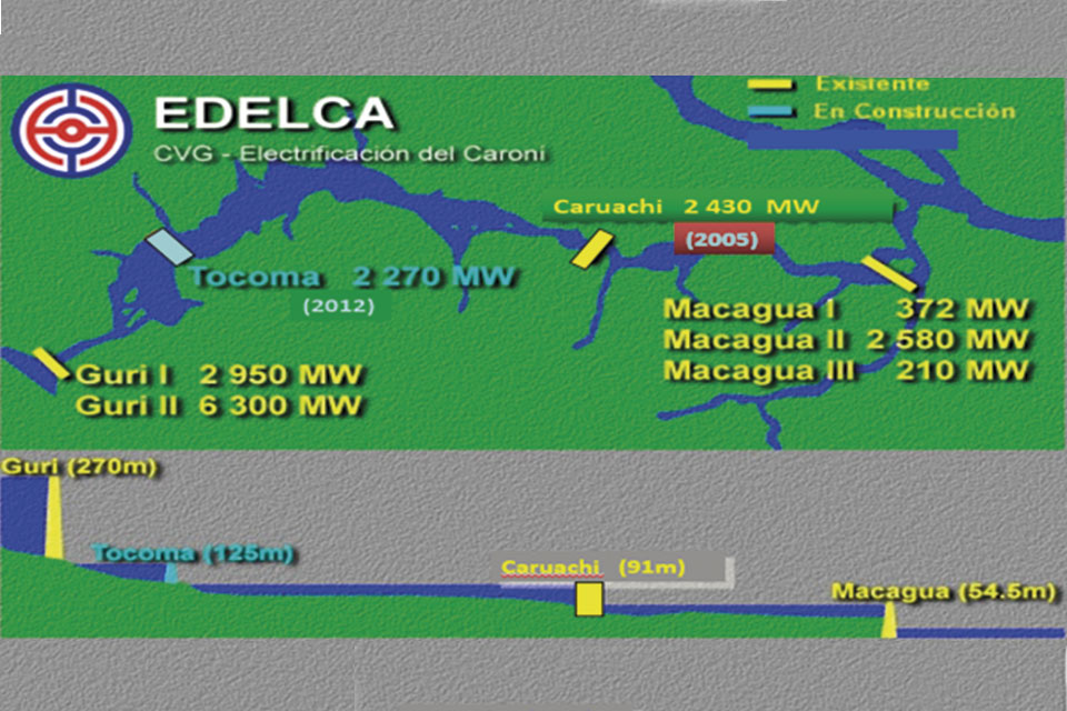 El ingeniero eléctrico asegura que en la actualidad la potencia activa en Caroní es de 12.500 MW, a pesar de que su capacidad instalada nominal es de 15.000 MW, ello debido a que hay turbinas en mantenimiento y reemplazo. La potencia total está distribuida de la siguiente manera: 10.000 MW en Guri, 2.500 en Macagua y 2.400 en Caruachi, explica.