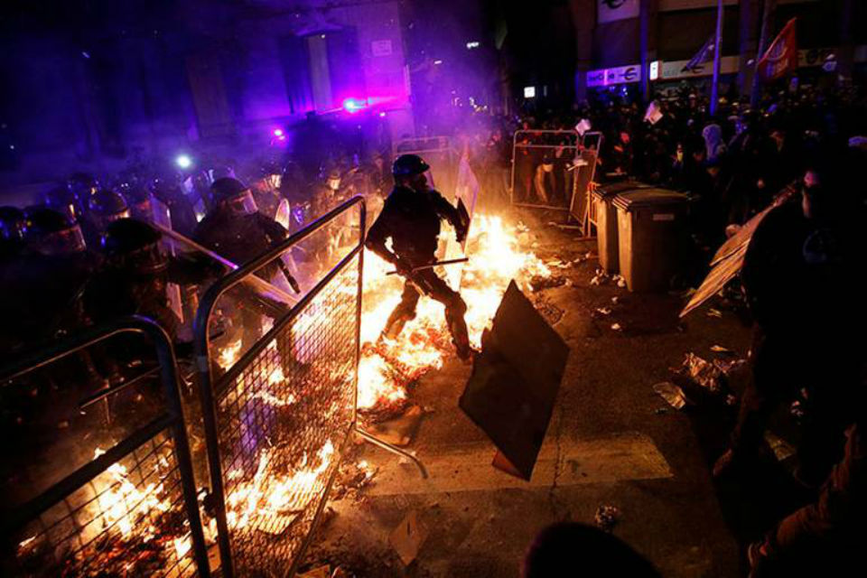 En la Vía Laietana, próxima a la Jefatura de la Policía Nacional, la policía hizo frente con botes de humo, gases lacrimógenos y pelotas de goma a numerosos grupos violentos que habían levantado hogueras e incendiado barricadas, lanzaron bengalas, piedras, botellas de vidrio y objetos contundentes.