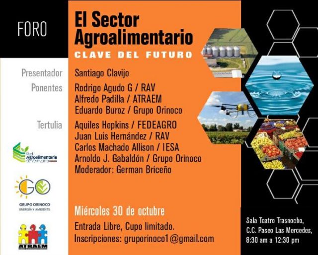 La Red Agroalimentaria de Venezuela presentará este miércoles, 30 de octubre, el foro “El sector agroalimentario, clave del futuro”, evento que se desarrollará en el Teatro Trasnocho de Las Mercedes, en Caracas, y que contará con una serie de panelistas e invitados que disertarán sobre la importancia de la industria de los alimentos y la necesidad urgente de su recuperación.