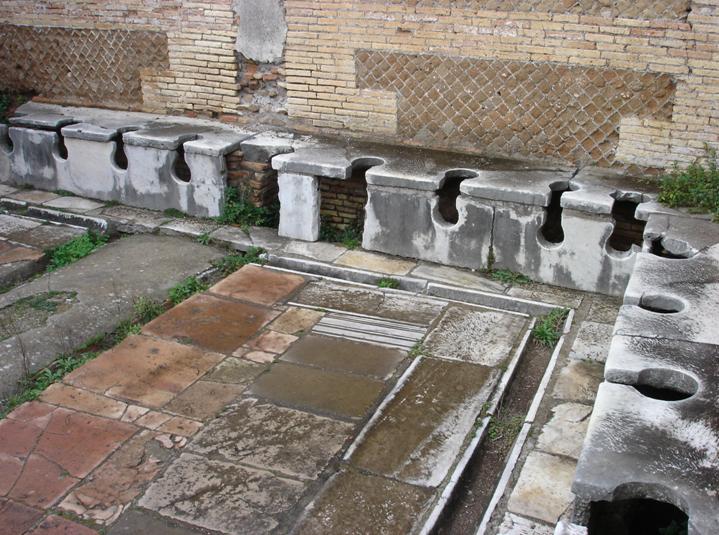 Con sus letrinas públicas que usaban agua corriente los romanos se acercaron mucho a la idea actual del inodoro; el sistema se llevaba de inmediato las deposiciones hacia cloacas subterráneas, de forma tal que los malos olores se mantenían en su mínima expresión.
