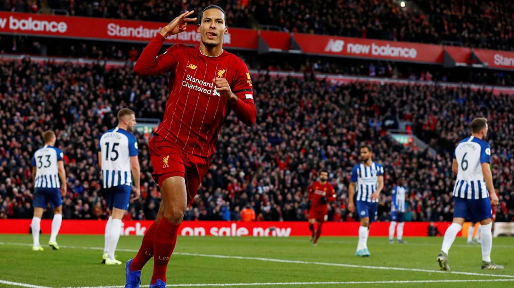 Liverpool camina con paso firme rumbo a su primer título de la Premier League, los ‘Reds´ hicieron valer el empate del Manchester City derrotando 2-1 a Brighton con dos goles de Virgil Van Dijk quien mantuvo el invicto del conjunto de Anfield tras 14 jornadas.
