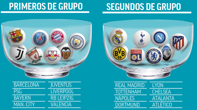 Cuatro españoles –Barcelona, Real Madrid, Atlético de Madrid y Valencia-, cuatro ingleses –Manchester City, Liverpool, Chelsea y Tottenham-, tres alemanes –Bayern, Borussia Dortmund y RB Leipzig-, tres italianos –Juventus, Nápoles y Atalanta– y dos franceses –PSG y Olympique Lyon– darán forma a las eliminatorias. No habrá portugueses, ni holandeses… El poderío económico y deportivo de la Premier, la Serie A, la Bundesliga, LaLiga y la Ligue 1 les alejada del resto.