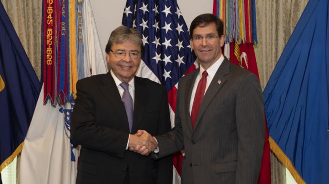 Mark Esper, jefe del Pentágono, ratificó el compromiso de Estados Unidos de resolver la crisis en Venezuela junto a su aliado Colombia, en momentos en que «poderes externos buscan imponerse en América Latina», en alusión a China y Rusia.