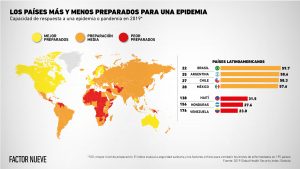 Según el Global Health Security Index, Venezuela se ubica «entre las 20 naciones peor preparadas para afrontar la crisis que significa la propagación de una epidemia», como el coronavirus originado en China en 2019.