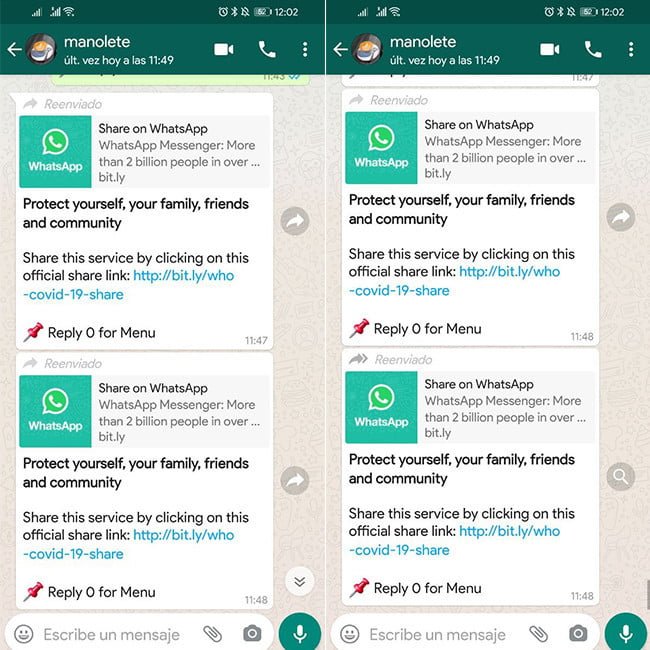 En 2018, WhatsApp introdujo en un límite de cinco chats por reenvío, algo que, según la compañía, les ha ayudado a reducir un «25% el reenvío de mensajes a nivel mundial». De la misma forma, el año pasado introdujo la etiqueta «doble fecha» para indicar en los chats que un mensaje había sido reenviado muchas veces. La medida anunciada hoy va un paso más allá y, si bien es cierto que no evita que se difundan bulos, sí hace que la tarea sea más laboriosa.