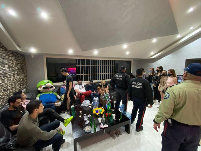 La celebración se llevaba a cabo en el Pent-House del edificio y al momento del ingreso policial los jóvenes intentaron evadir a la comisión. Vásquez reiteró que no va a haber tolerancia con este tipo de actividades que pueden conllevar al contagio de más ciudadanos, por la irresponsabilidad de aquellos que no cumplen con las normativas del estado, y las medidas de bioseguridad.