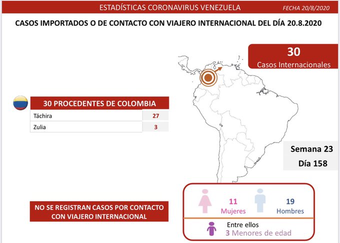 Sobre los 8 fallecidos de las últimas 24 horas dijo que se trata de 2 hombres de 69 y 61 años en el estado Sucre y 1 hombre de 47 años en Trujillo. Además de 1 mujer de 56 años en Anzoátegui, 1 mujer de 64 años en el Zulia, 1 hombre de 49 años en Mérida, 1 hombre de 41 años en Miranda y 1 mujer de 68 años en Dtto Capital.