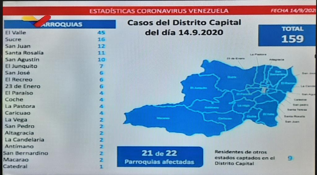 Ratificó que Caracas sigue siendo la entidad con mayor número de contagios, con 159 en sus 22 parroquias.