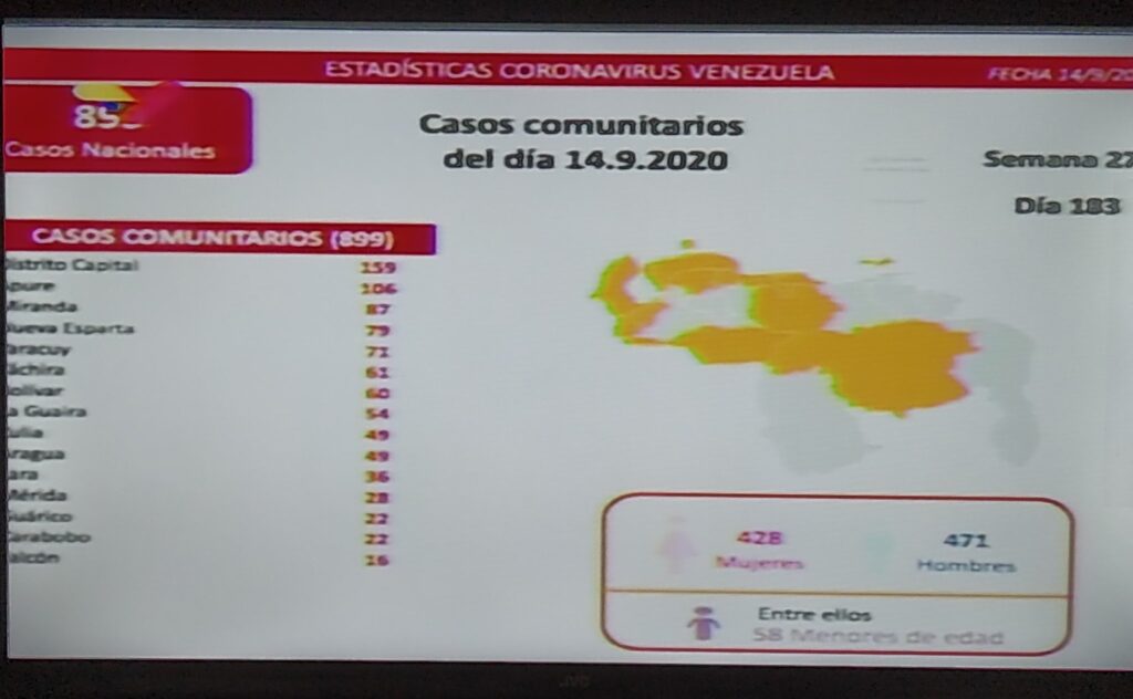 El ministro de Comunicación del régimen, Freddy Ñáñez, informó este lunes que en las últimas 24 horas se produjeron en el país 899 nuevos casos de coronavirus de transmisión comunitaria y 130 importados, para totalizar 61.569 contagios, desde marzo.