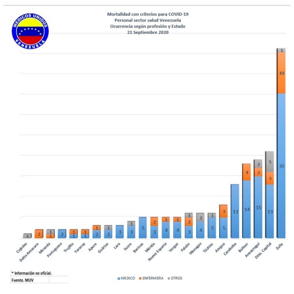 El estado Zulia encabeza la lista de entidades donde más médicos y enfermeras han muerto por la COVID-19. Le siguen Distro capital Bolívar y Anzoátegui.