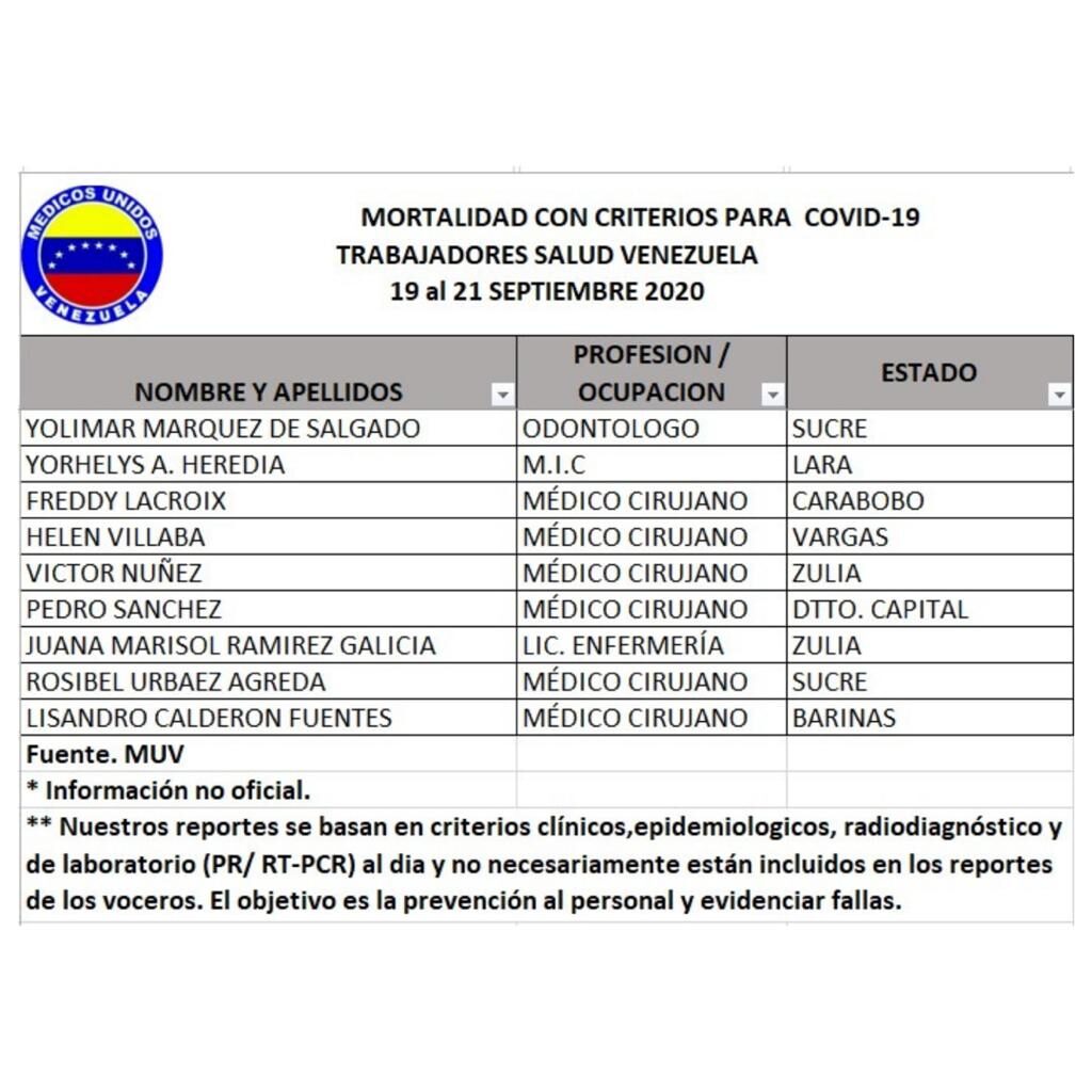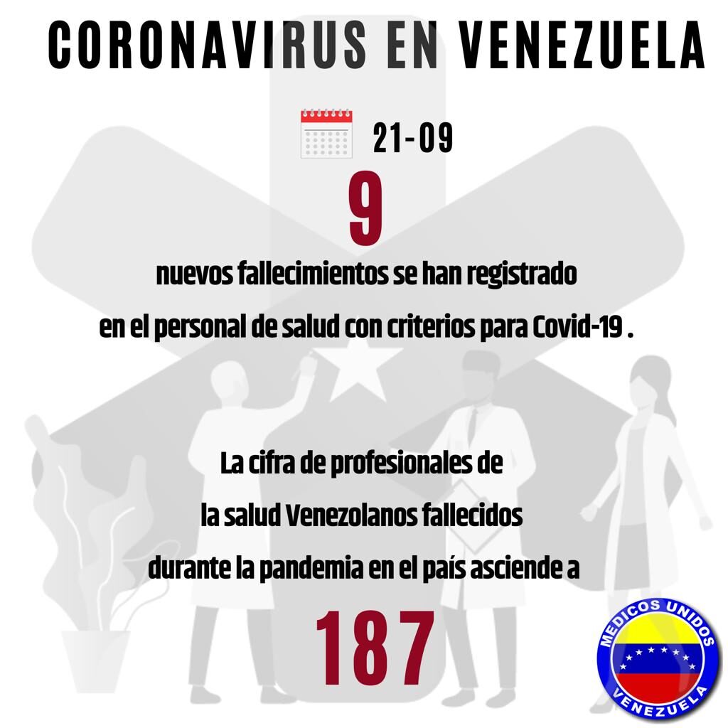 La ONG Médicos Unidos por Venezuela informó que 187 trabajadores de la salud fallecieron hasta el 21 de este mes. No obstante, con la muerte de Rosendo y la de otros dos galenos en Mérida, ya suman 190 los decesos por la misma causa.