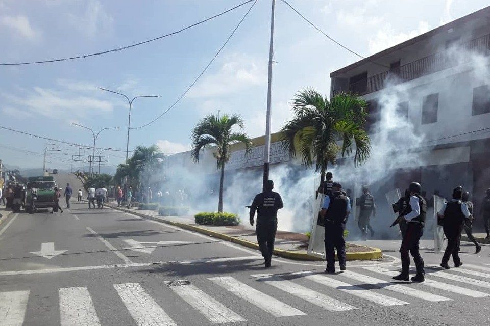 “A esta hora, las fuerzas represivas de Julio León Heredia y colectivos armados, arremeten contra pobladores de San Felipe que cansados exigen derechos fundamentales que se les niegan y piden un cambio en la conducción del país y de la región ¡Basta de reprimir al pueblo!”, publicó.