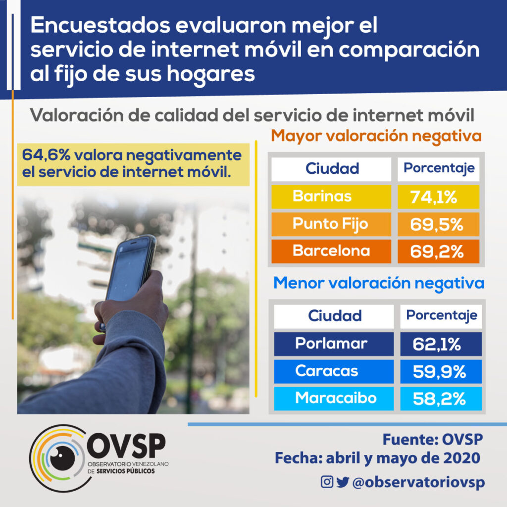 El OVSP hizo el estudio en 10 de las principales ciudades del país. Aclara la ONG que los ciudadanos encuestados evaluaron mejor el internet móvil en comparación al servicio fijo de sus hogares.