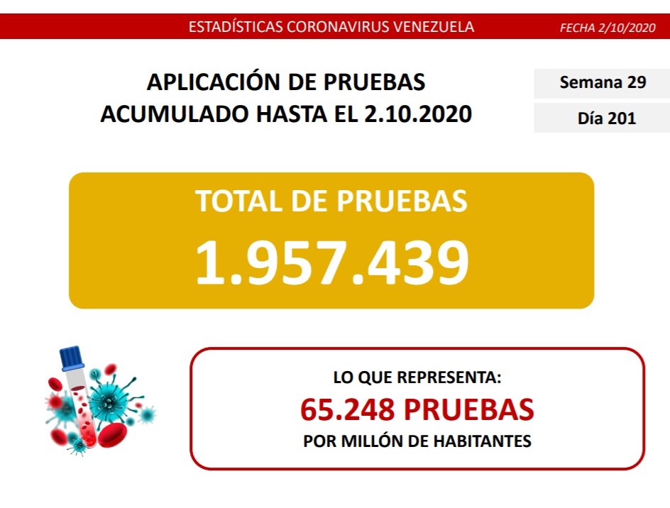 Este viernes, Freddy Ñáñez , ministro de Información del régimen informó que el país registra 76.820 casos de coronavirus y 643 muertos desde marzo hasta el 01 de octubre.