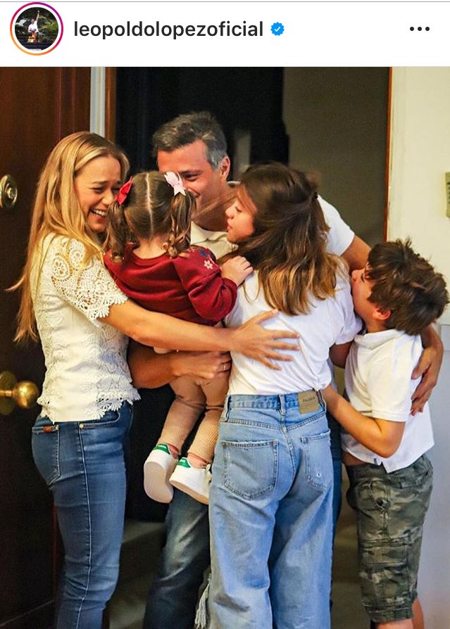 Una imagen que llenó de alegría al pueblo venezolano y es el reencuentro del líder político venezolano, Leopoldo López, con su familia, después de pasar 18 meses sin poderse abrazar luego de ingresar en condición de huésped a la Embajada de España ubicada en Caracas.
