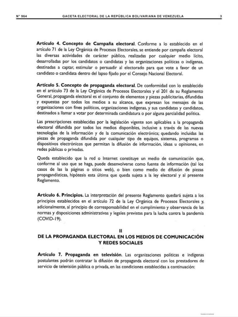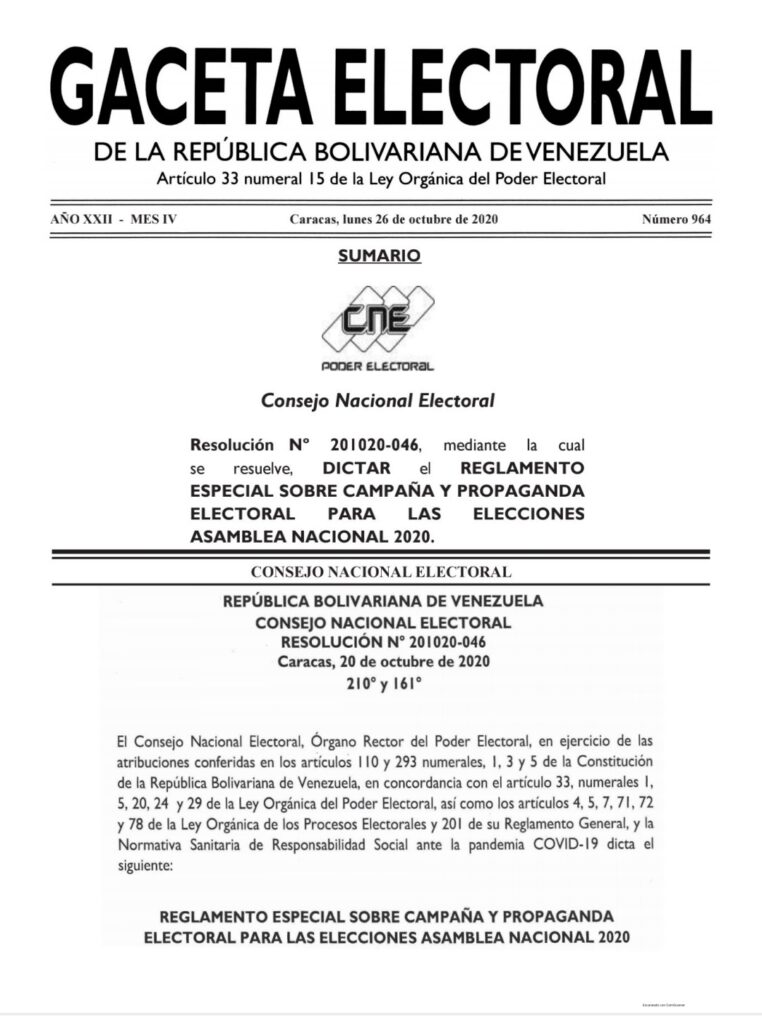 Este martes, el Consejo Nacional Electoral (CNE) del régimen publicó en Gaceta Oficial el reglamento de propaganda electoral para las elecciones parlamentarias del 6 de diciembre.