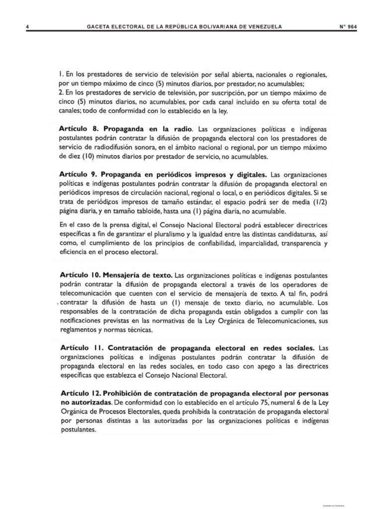 Además, queda prohibida la propaganda electoral, por cualquier medio de difusión, que se produzca fuera del lapso antes mencionado.