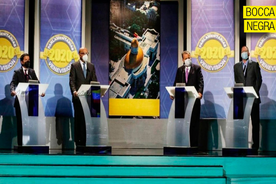 Venevisión prestó sus estudios y puso a la periodista Endrina Yépez como moderadora. Participaron Timoteo Zambrano, de Cambiemos, y Luis Augusto Romero, de Avanzada Progresista por la oposición. Por el Partido Socialista Unido de Venezuela (PSUV) estuvieron Jorge Rodríguez y Jesús Faría. Como se ve, hasta en los debates el Gobierno abusa.