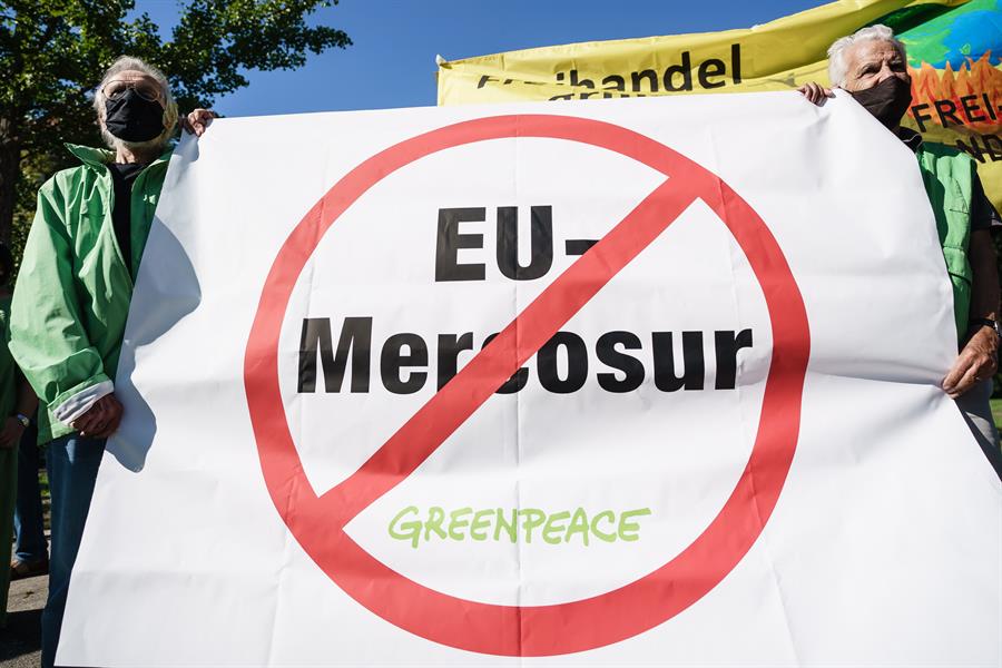 El pacto entre la UE y el Mercosur (Argentina, Brasil, Paraguay y Uruguay), cerrado en 2019 tras veinte años de negociaciones, debe aún ratificarse, aunque Francia, Holanda y Austria, críticos con la política ambiental brasileña, amenazan con rechazarlo.