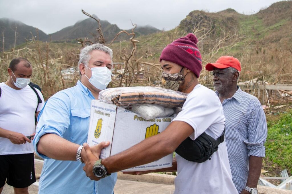 «Quiero transmitirle un mensaje a los colombianos: la comunidad, los mecanismos de prevención, los espacios de albergue, los mecanismos de alerta llevaron a que la comunidad no tuviera una afectación sustancial desde el punto de vista de pérdidas humanas», expresó Duque tras constatar la destrucción en Providencia.