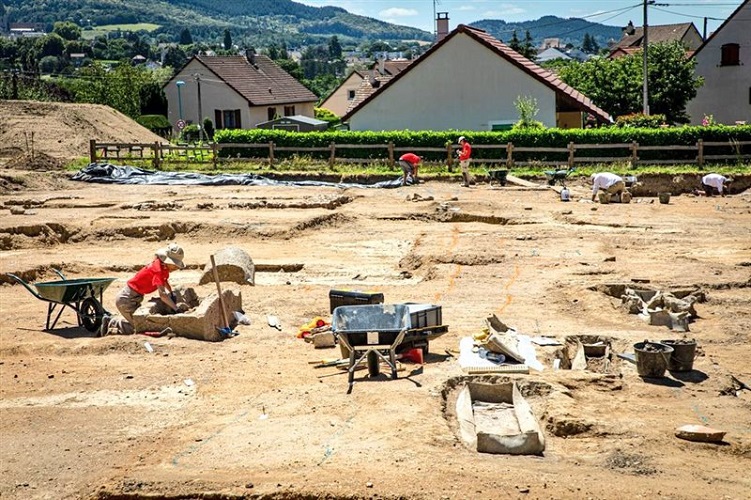 Este no es el único tesoro que ha dado la necrópolis de Augustodunum, donde se están realizando trabajos arqueológicos desde junio de este año y se han descubierto alrededor de 230 sepulturas de época bajoimperial. En ellas se han encontrado una gran variedad de artículos de lujo como anillos de oro y piedras preciosas, alfileres de ámbar, telas de púrpura con hilos de oro, perlas y otras joyas; además de monedas.