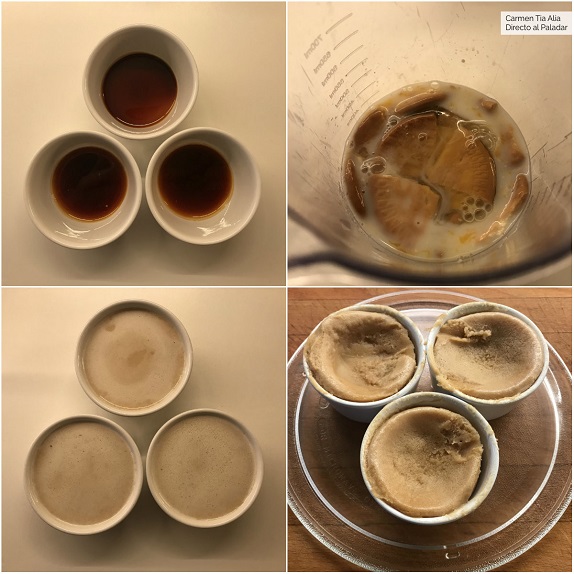 5-Luego sacamos las flaneras del microondas y las dejamos enfriar antes de guardarlas en la nevera, donde cogerán cuerpo. Desmoldamos y servimos.