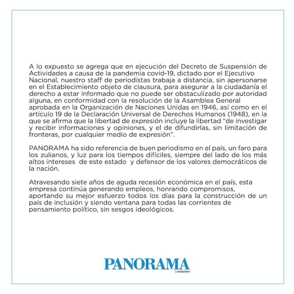 En un comunicado, Panorama asegura que «ha sido una contribuyente económica» y que «se mantiene con su compromiso de informar».
