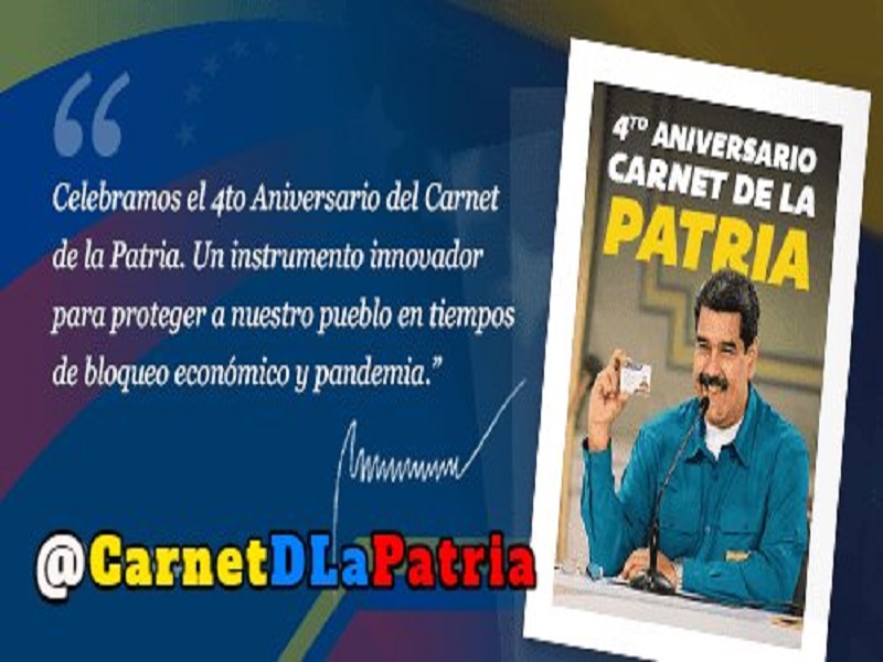 Desde este jueves comenzó la entrega del bono 4to Aniversario de Carnet de la Patria. La entrega de la bonificación se extenderá hasta el próximo 31 de enero.