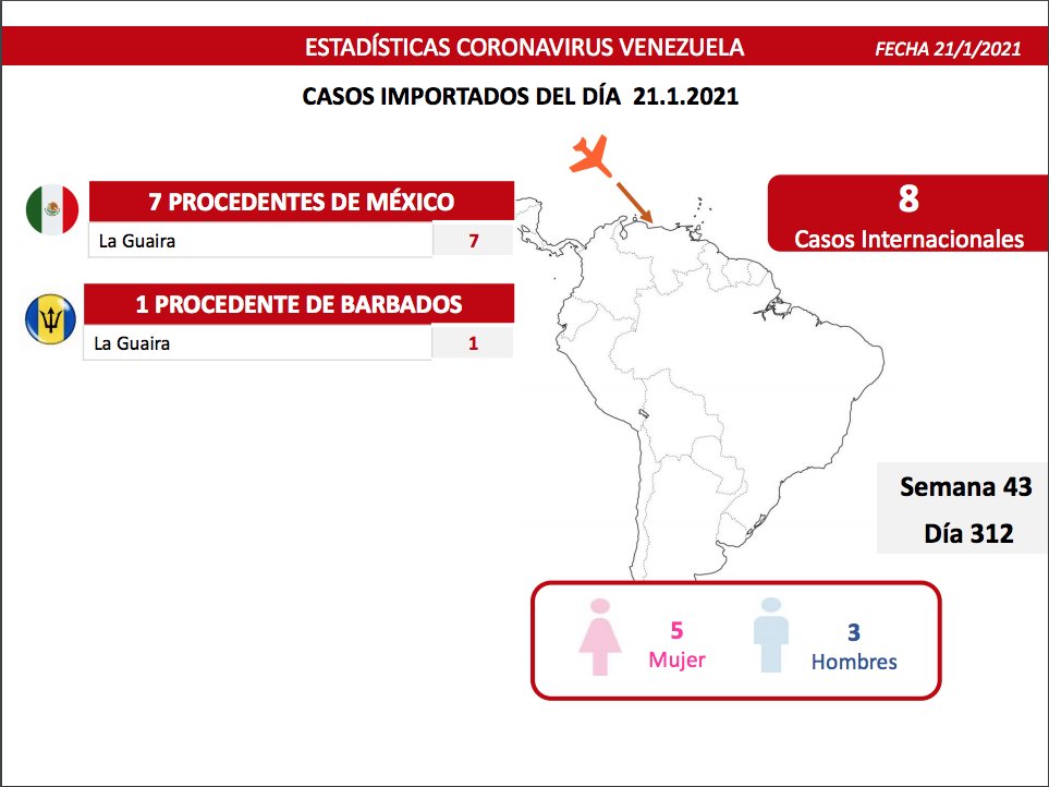 Además, se agregaron 8 casos «importados», es decir, personas que ingresaron al país, en este caso provenientes de México y Barbados.