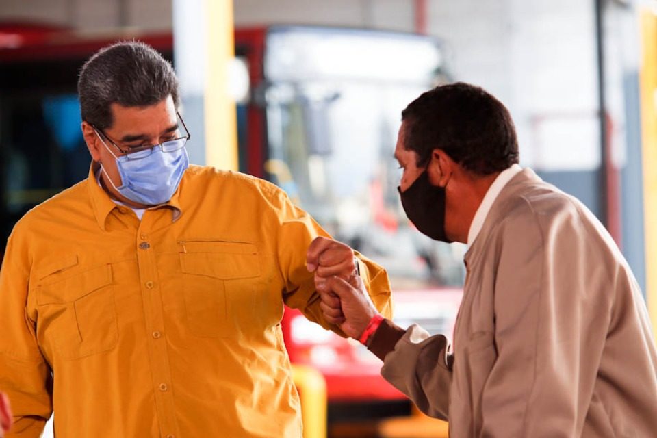 Nicolás Maduro junto al Ministro de Transporte, Hipólito Abreu, y funcionarios del sector transporte evocaron este domingo 21 de febrero la época del mandatario como dirigente sindical.