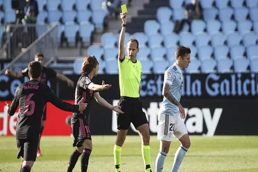 El enfadó del Madrid fue monumental por la falta que le señalaron a Luka Modric en la frontal del área y que a punto estuvo de suponer el empate a dos para el Celta. Fue un pase de Modric, desde el suelo, a Lucas Vázquez que el colegiado castigó con falta y amarilla para el craoata. «En el minuto 80 el jugador (10) Modric , Luka fue amonestado por el siguiente motivo: Derribar a un contrario de forma temeraria en la disputa del balón», reza el acta del encuentro. El croata no daba crédito y los dirigentes del Madrid, viendo las imágenes por televisión, tampoco. Aspas terminaría estrellando el balón en el poste, lo que provocó que los jugadores siguieran protestando. Y es que los madridistas tuvieron la sensación de que se pudieron dejar dos puntos vitales en la lucha por LaLiga por un error que ellos consideran «garrafal».