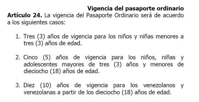 La Administración de Nicolás Maduro amplió a 10 años la vigencia del pasaporte venezolano para los ciudadanos mayores de 18 años de edad, y por cinco años la prórroga del documento. La información está contenida en la Gaceta Oficial Nº 42.092, con fecha de publicación 22 de marzo de 2021.