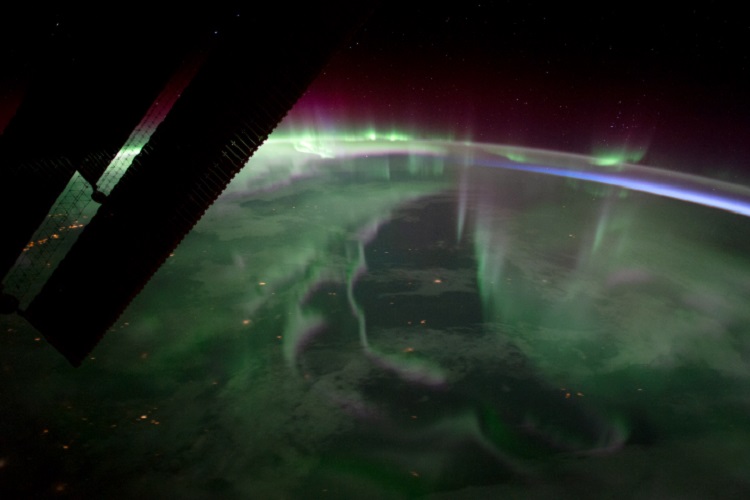 Descripción: Un astronauta tomó esta foto de una aurora boreal cuando la estación espacial pasó sobre Ontario, Canadá.