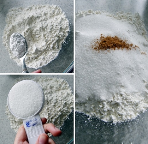 1-Mezclar en un bowl la harina, polvo de hornear, azúcar y canela.