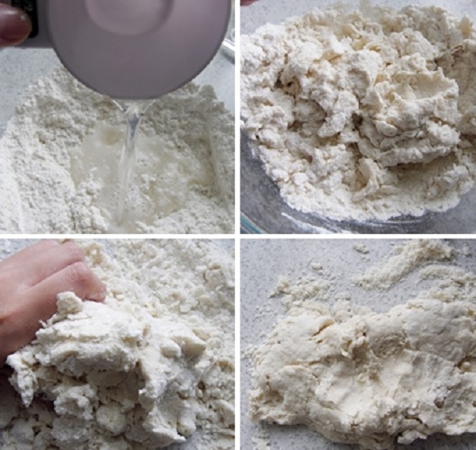 4-Vaciar sobre el área de trabajo y trabajar con las manos la masa hasta que se empieza a incorporar bien y no se queda pegada en las manos.