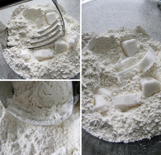 2-Agregar la manteca en cuadritos y mezclar con las manos hasta que se sienta como arena fina.