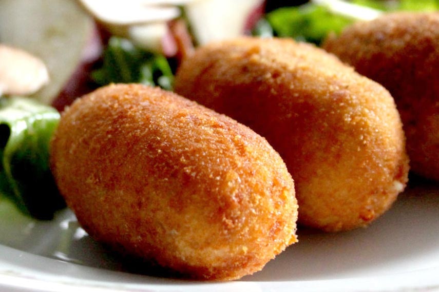 Calentar el aceite en una olla de fondo grueso y armar las croquetas con las manos o con ayuda de dos cucharillas.