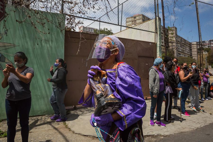 Los más devotos se vistieron de morado o se arrodillaron para extenderle sus oraciones y peticiones, mientras que los menos atrevidos lo recordaron a través de las redes sociales donde también hubo súplicas por el fin de la covid-19 que en Venezuela ha dejado casi 160.000 contagios y 1.589 muertes.