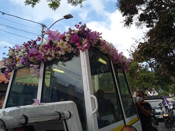 La imagen del Nazareno, que tradicionalmente es paseado en una procesión y colocado sobre una alfombra de más de 5.000 orquídeas que cultivan sus feligreses, recorrió la capital a bordo de un vehículo acristalado, debido a las restricciones impuestas por la pandemia.
