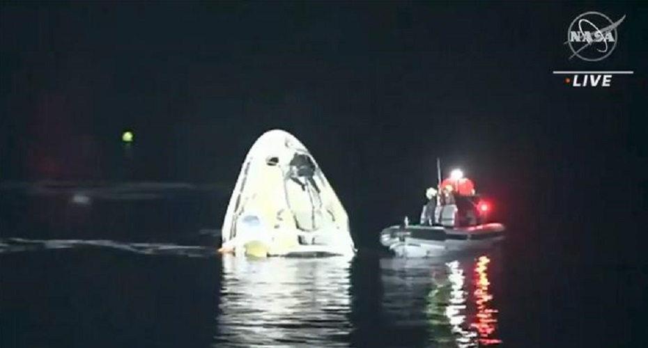 Es el primer amerizaje nocturno de una nave tripulada en EU desde la misión lunar del Apolo 8.