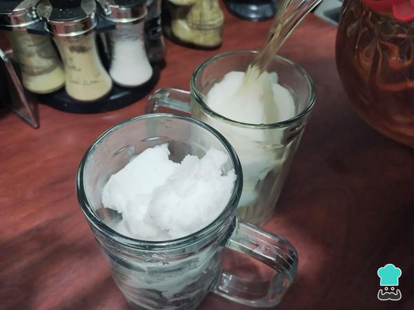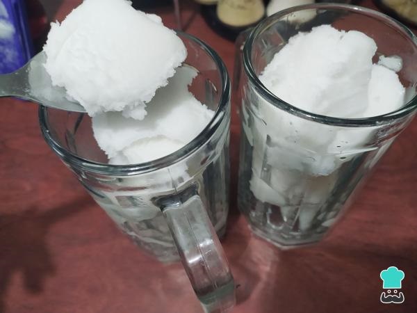 1-Agrega 3 cucharadas de helado de piña en dos vasos grandes.