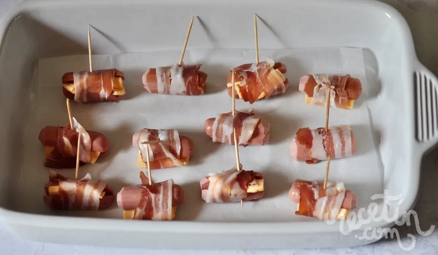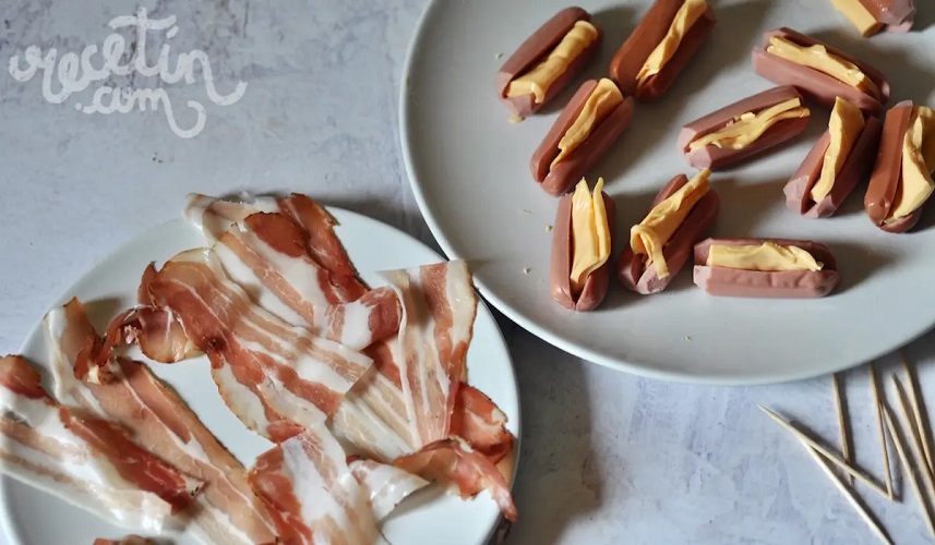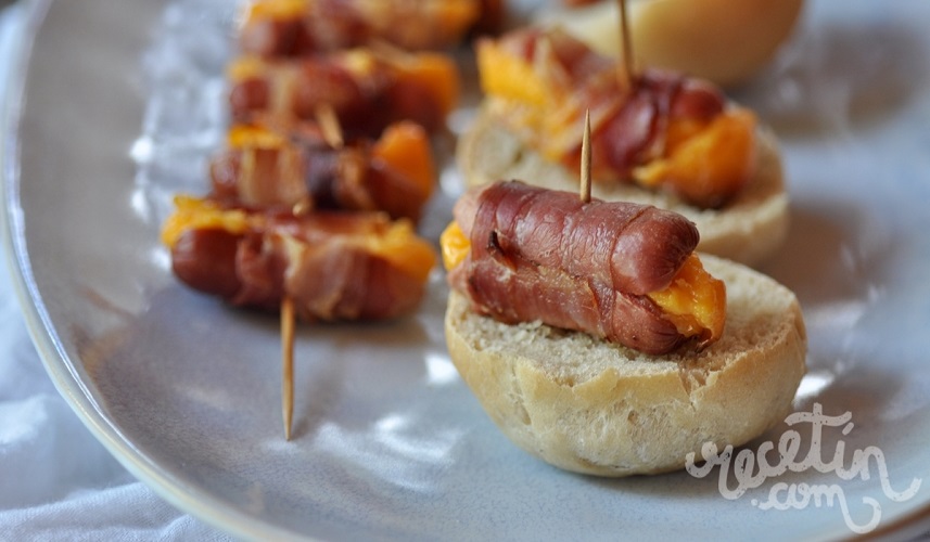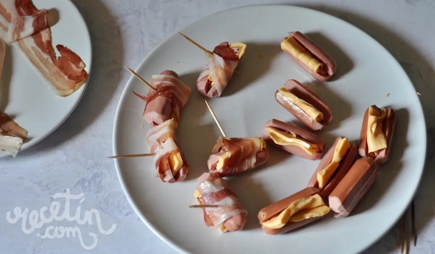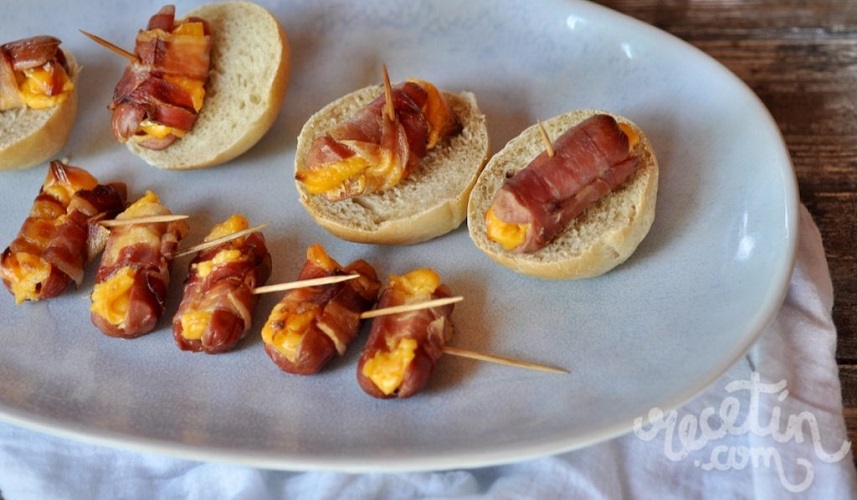 Ricos para compartir, rollitos de salchichas rellenas de queso y tocineta