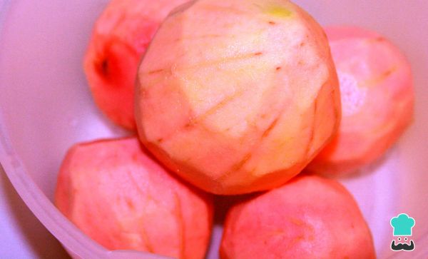 1-Cuando tengas todo listo en la cocina para hacer este rico dulce de guayaba casero, empieza por retirar las cáscara de las guayabas con un cuchillo o un pelador de papas.