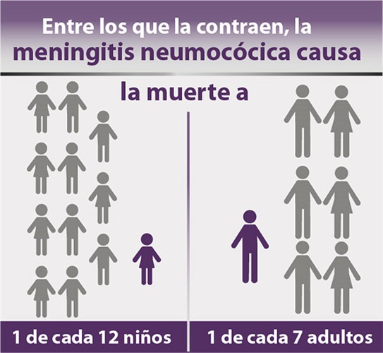 Aproximadamente 1 de cada 12 niños y 1 de cada 7 adultos mayores que contraen la meningitis neumocócica mueren a causa de la infección. Los que la sobreviven pueden presentar problemas a largo plazo, como la pérdida auditiva y retraso del desarrollo.