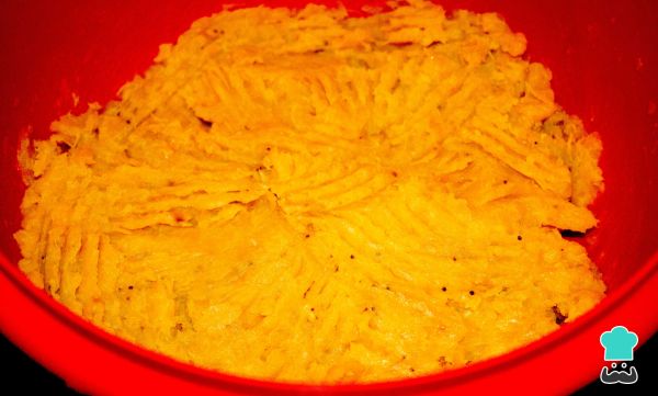 4-Agrega el huevo y amasa el puré hasta que logres obtener una masa de textura homogénea. Realiza una bola con ella y reserva.