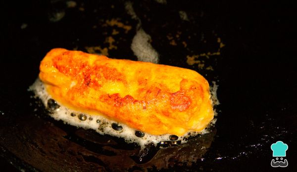 10-Precalienta una sartén con aceite y pon a freír los tequeños de plátano hasta que estén dorados. Recuerda el plátano se cocina muy rápido y además ya está cocido previamente.