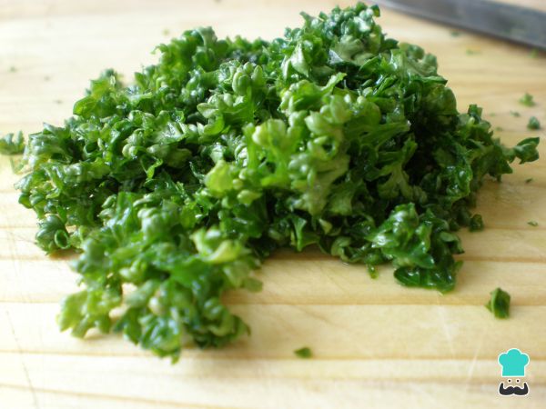 3-Pica también muy fino los ramilletes de cilantro y perejil. La cantidad es al gusto pero procura usar lo mismo de cada uno para que no predomine ningún sabor.