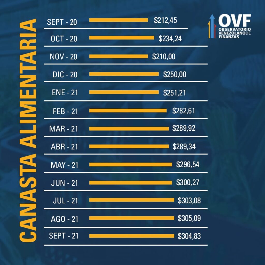 El precio de la canasta básica alcanzó su máximo histórico en dólares en Venezuela, para una estimación de US$ 304 (Bs.1.310,7).