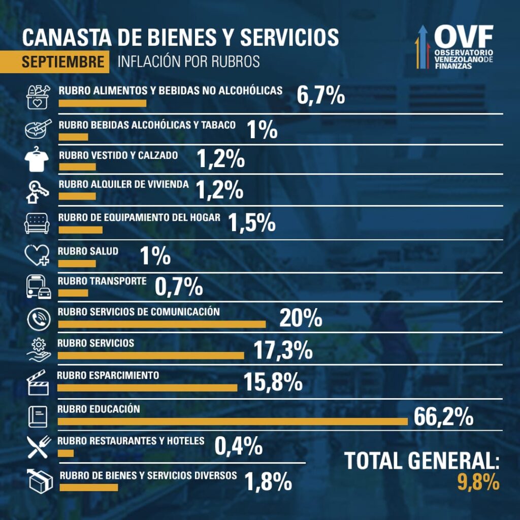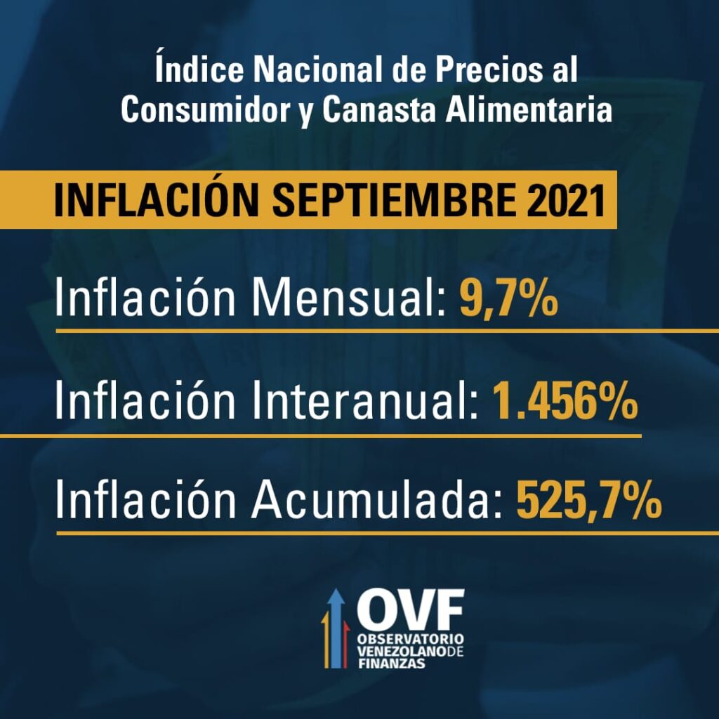 Mientras tanto, la inflación mensual fue del 9,7 % en septiembre pasado, según la entidad independiente que agrupa a varios analistas económicos.